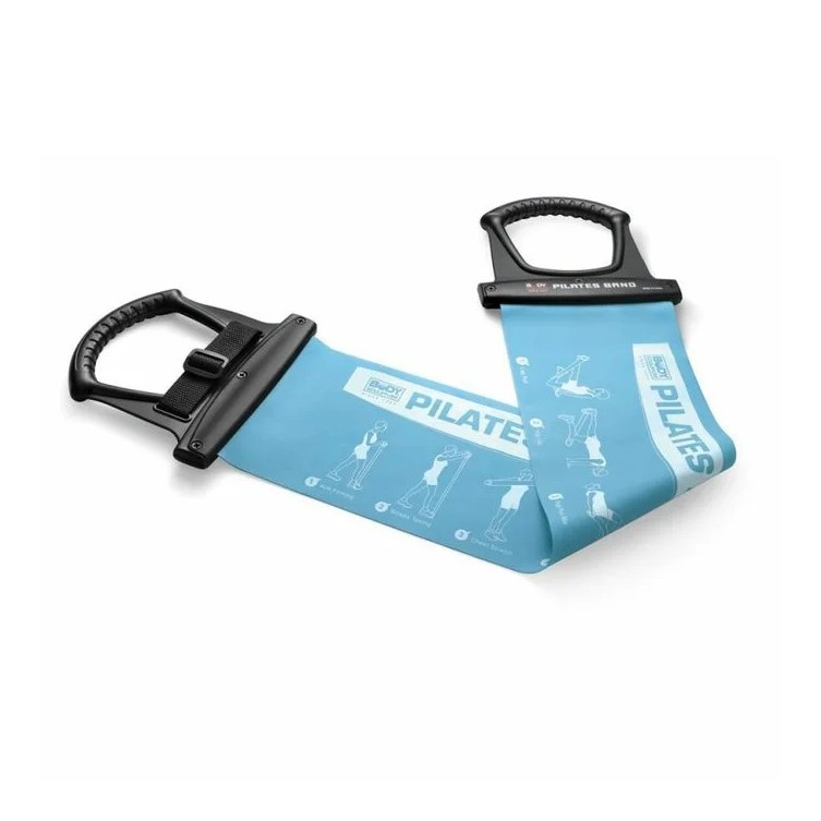 Bande de Pilates Body Sculpture bleue avec poignées.