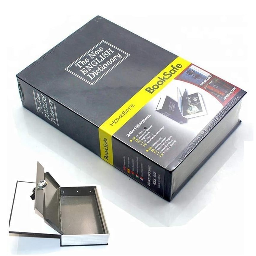 - Conçu pour ressembler à un dictionnaire, ce coffre-fort en forme de livre se range facilement sur une étagère ou dans un sac à main, offrant une solution de rangement discrète.