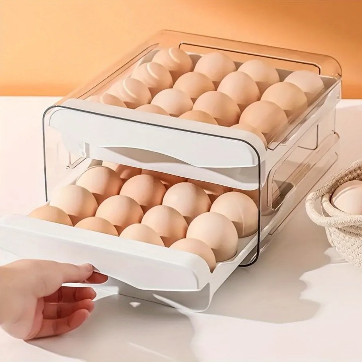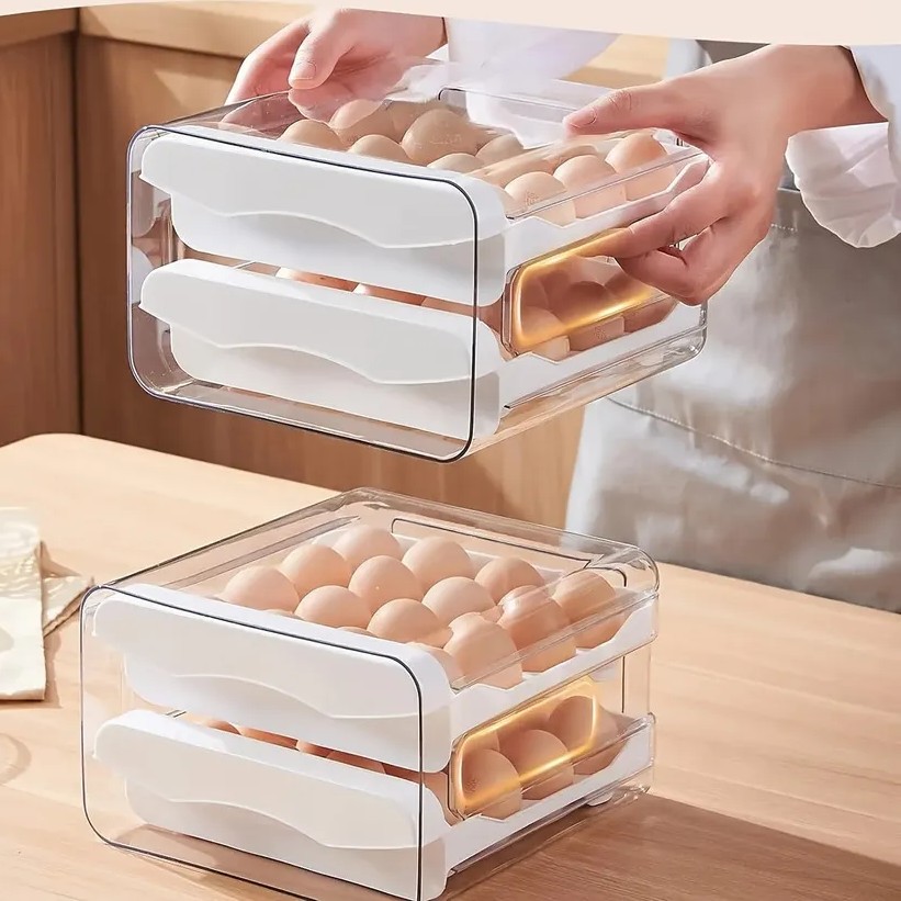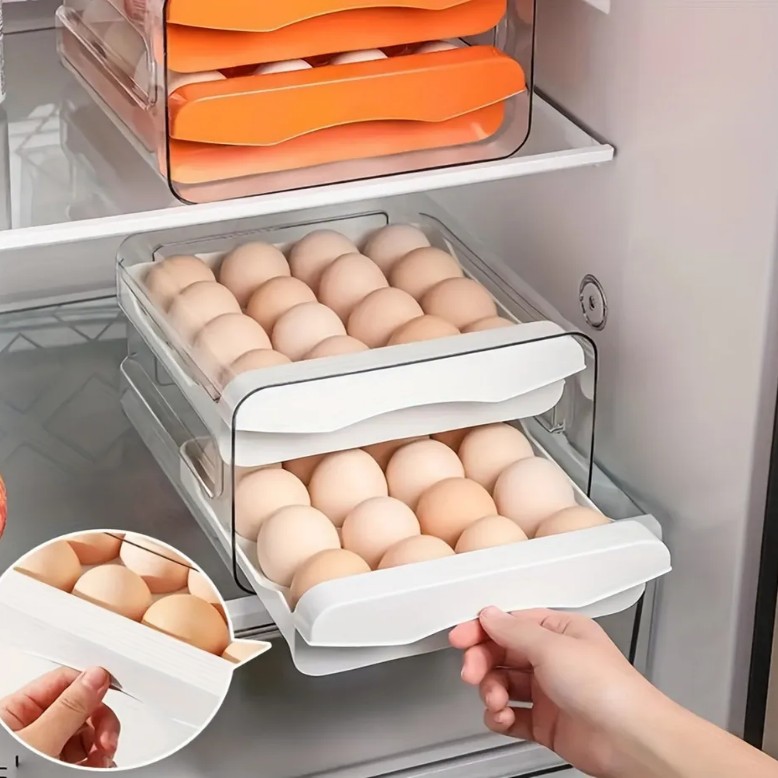 Support à œufs de 32 capacités pour réfrigérateur, récipient à œufs pour réfrigérateur, 2 tiroirs de rangement pour œufs