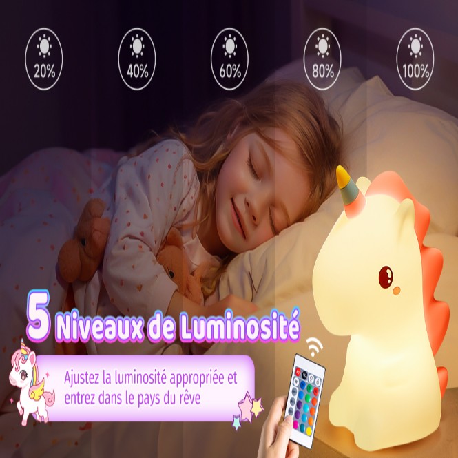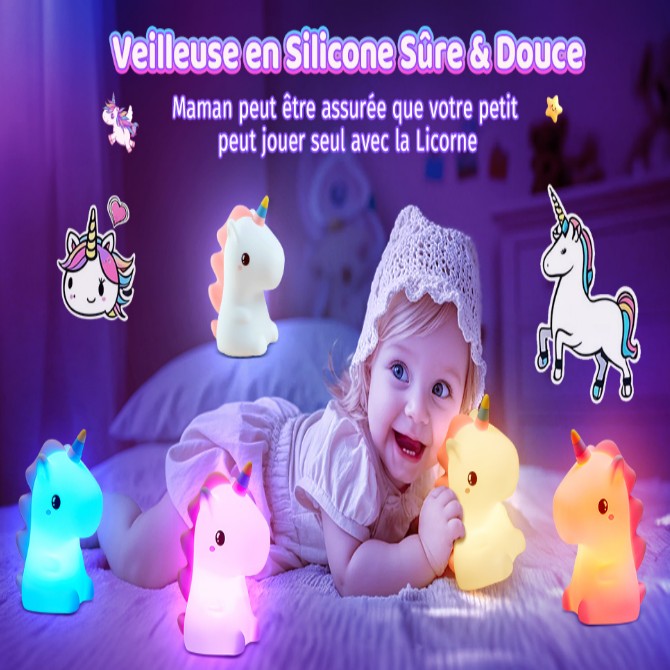 Veilleuse licorne tactile en silicone avec éclairage LED